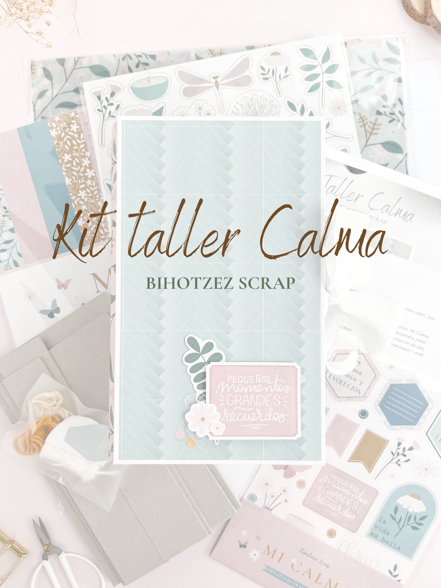 El kit del taller online Calma está pensado para que puedas disfrutar del scrapbooking sin prisas y sin preocupaciones y puedas hacer el taller online Calma. He preparado este kit con todos los materiales que utilizamos durante el taller, para que solo tengas que sentarte, crear y conectar con el proceso.
