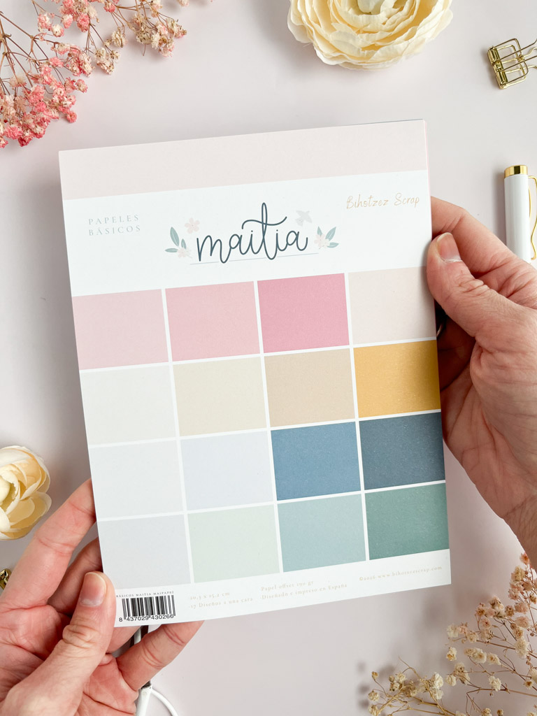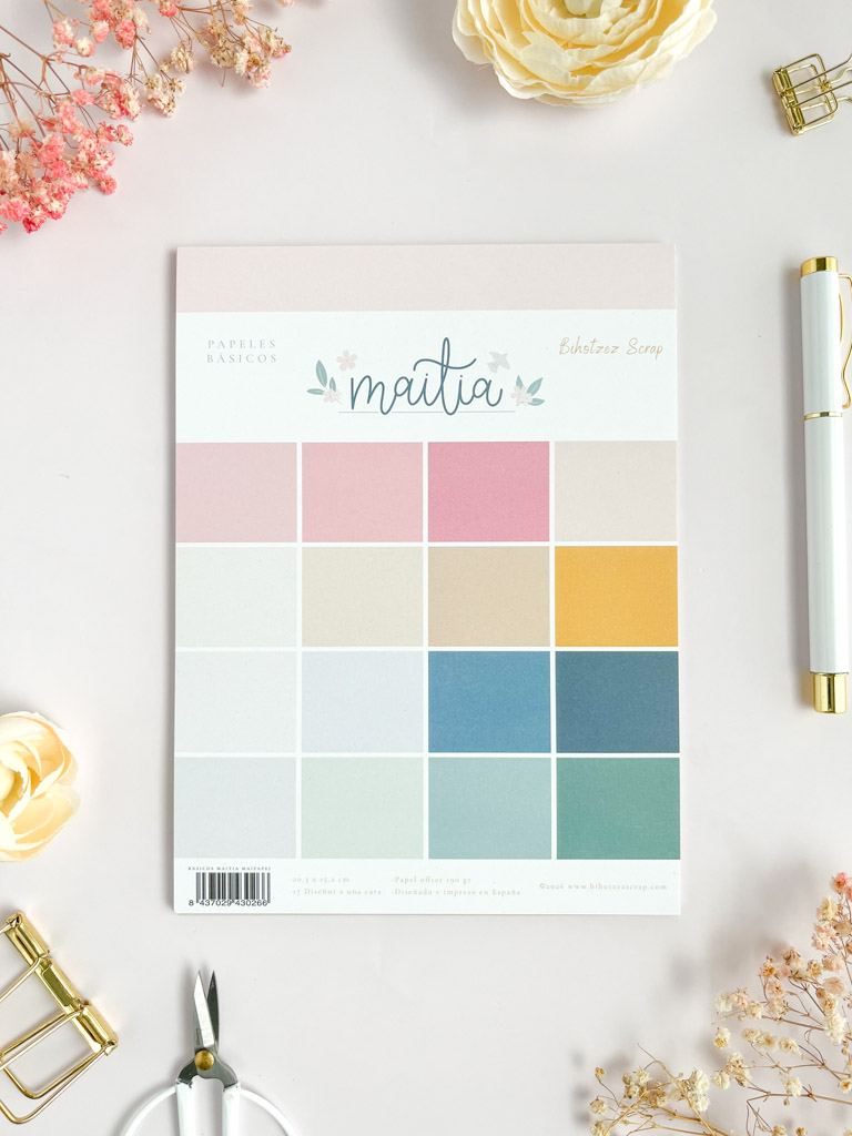 • 17 papeles a una cara con los colores coordinados de la colección Maitia